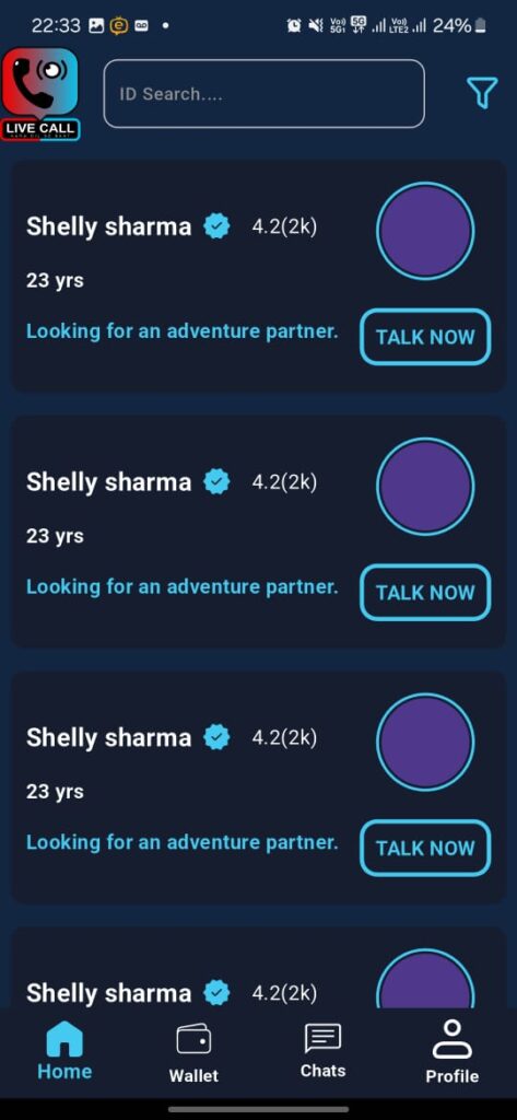 Live Call is a dynamic app that enables seamless live audio and video calls. It offers crystal-clear communication, user-friendly navigation, and secure connections, making it perfect for personal and professional use. Experience instant, high-quality interactions with Live Call anytime, anywhere.
